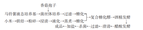 陜北風(fēng)味香菇小米發(fā)酵醋的生產(chǎn)工藝流程: